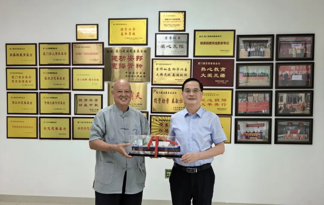 24日下午,集美大學(xué)黨委書記邱偉杰、校辦主任黃海宏、校董辦主任呂嫻一行蒞臨廈門建安慈善基金會(huì),拜訪校董孫吉龍先生。孫吉龍先生對(duì)邱書記一行的到來表示熱烈歡迎。